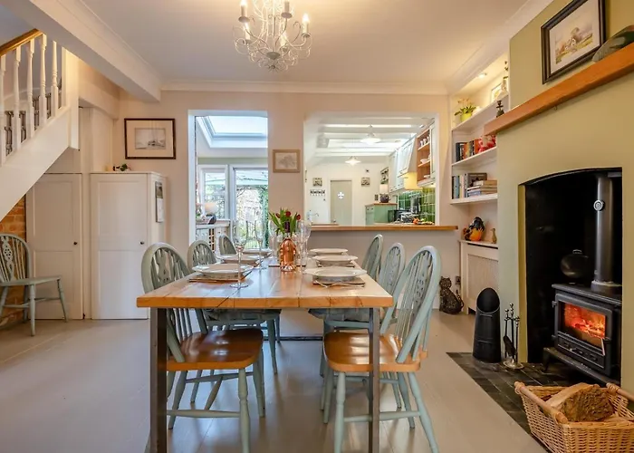 The Wimborne Minster holiday home is located in a residential area, in proximity to Walford Mill Crafts. The Pamphill Green can be found 2.6 km from the accommodation, and the Traditional Working Honeybrook Farm is 2.9 km away. Other nearby points of interest include the Chained library "Minster Church of St Cuthburga", which is just 9 minutes' stroll away.